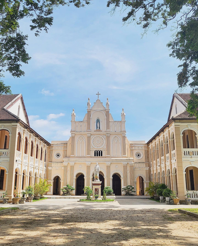 Tiểu chủng viện Làng Sông được xây dựng theo kiểu kiến trúc Gothic. Phần chính diện của nhà thờ được trang trí bằng những khung ô đối xứng, các bông gió trang trí và những hoa văn họa tiết, cổng vòm nhọn quen thuộc trong lối xây dựng kiến trúc Thánh đường. Vì vậy, du khách đến đây sẽ dễ có những khung hình kiểu châu Âu cổ điển.