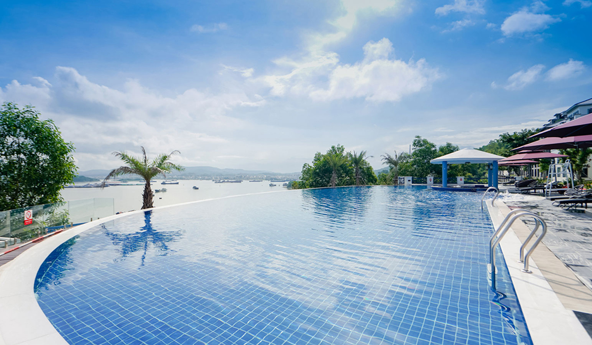 Điểm nhấn là bể bơi vô cực nhìn ra vịnh, tạo nên khung cảnh ấn tượng hiếm nơi có. Sau khi bơi lội, bạn có thể đặt mình trên những chiếc ghế dài, ngắm mặt trời soi ánh sáng xuống mặt nước.
