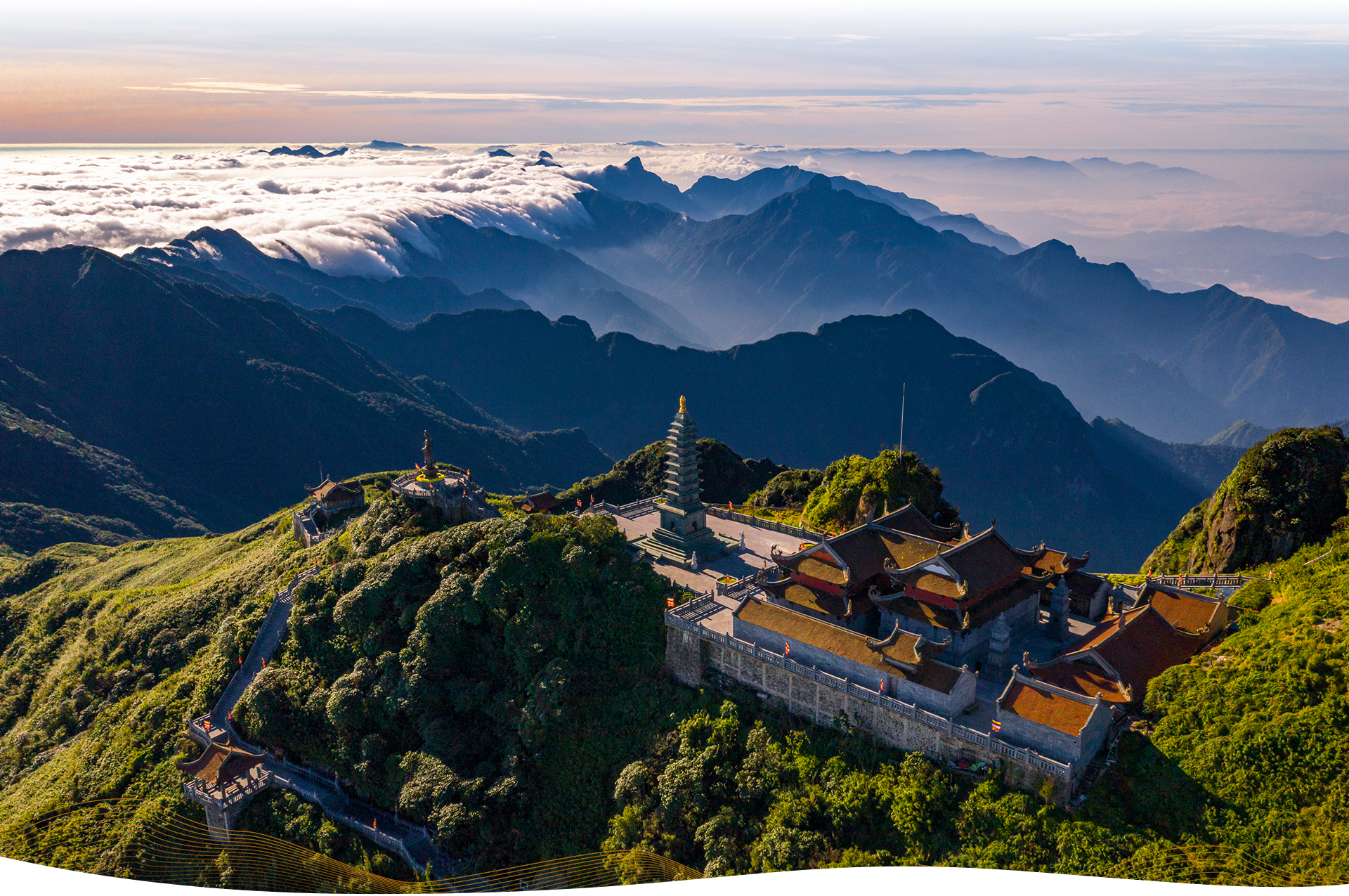 Khi cánh cửa cabin cáp treo mở ra, du khách có thể thấy đất trời hòa làm một, biển mây cuồn cuộn chảy dưới ánh nắng mặt trời rực rỡ. Trên nền nhiệt ở mức dưới 20 độ C trong mùa hè, có khi xuống dưới 15 độ C, Fasipan được sương giăng mây phủ, ẩn hiện những công trình tâm linh mang dáng dấp chùa Việt cổ thế kỷ 15-16. Tiếng chuông ngân trong lảng bảng mây mờ mang cảm giác yên bình, thanh tịnh cho du khách.