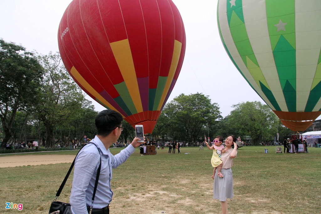 Biết có lễ hội khinh khí cầu, anh Nguyễn Hùng đã tranh đưa gia đình đến tham quan và ghi lại những khoảnh khắc đẹp. "Đây là dịp hiếm có được chiêm ngưỡng khinh khí cầu ở Huế. Không khí lễ hội khiến mọi người trong gia đình đều rất vui", anh Hùng chia sẻ.