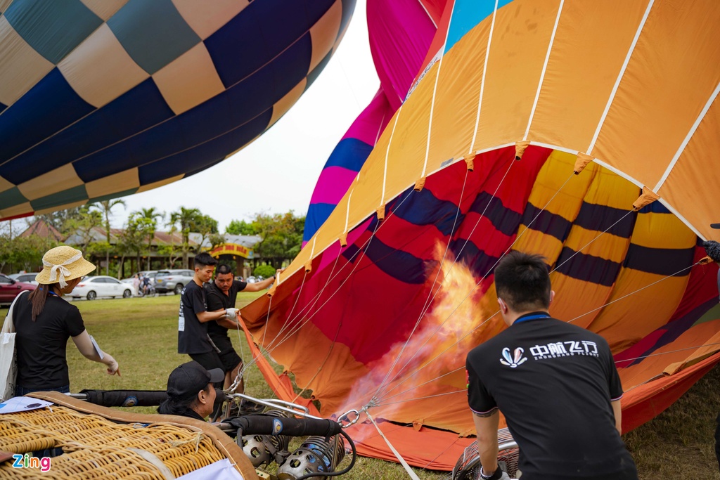 Để chuẩn bị cho màn trình diễn trong ngày khai mạc, các đội bay tiến hành bơm khí hidro để đưa khí cầu lên khỏi mặt đất. Quá trình này đòi hỏi các thành viên trong đội phải phối hợp nhịp nhàng, cẩn thận.