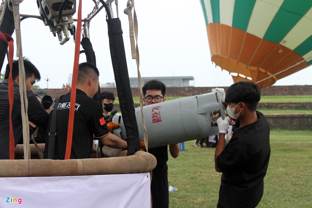 Đội hỗ trợ đưa bình khí vào giỏ khinh khí cầu.