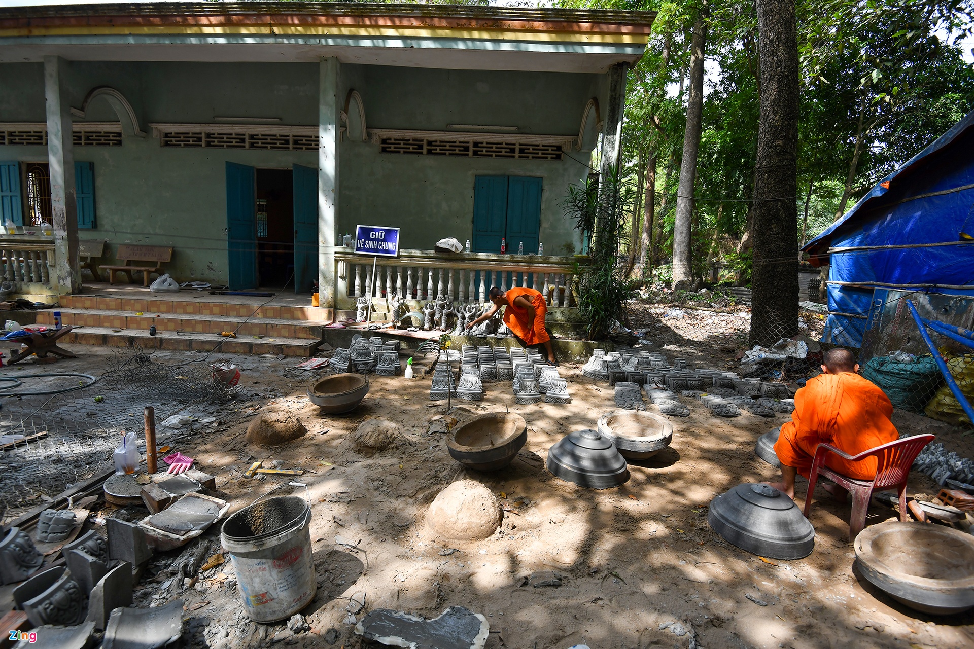 Các nhà sư tại chùa Dơi vừa tu học, vừa làm việc là hình ảnh quen thuộc đối với người dân địa phương.