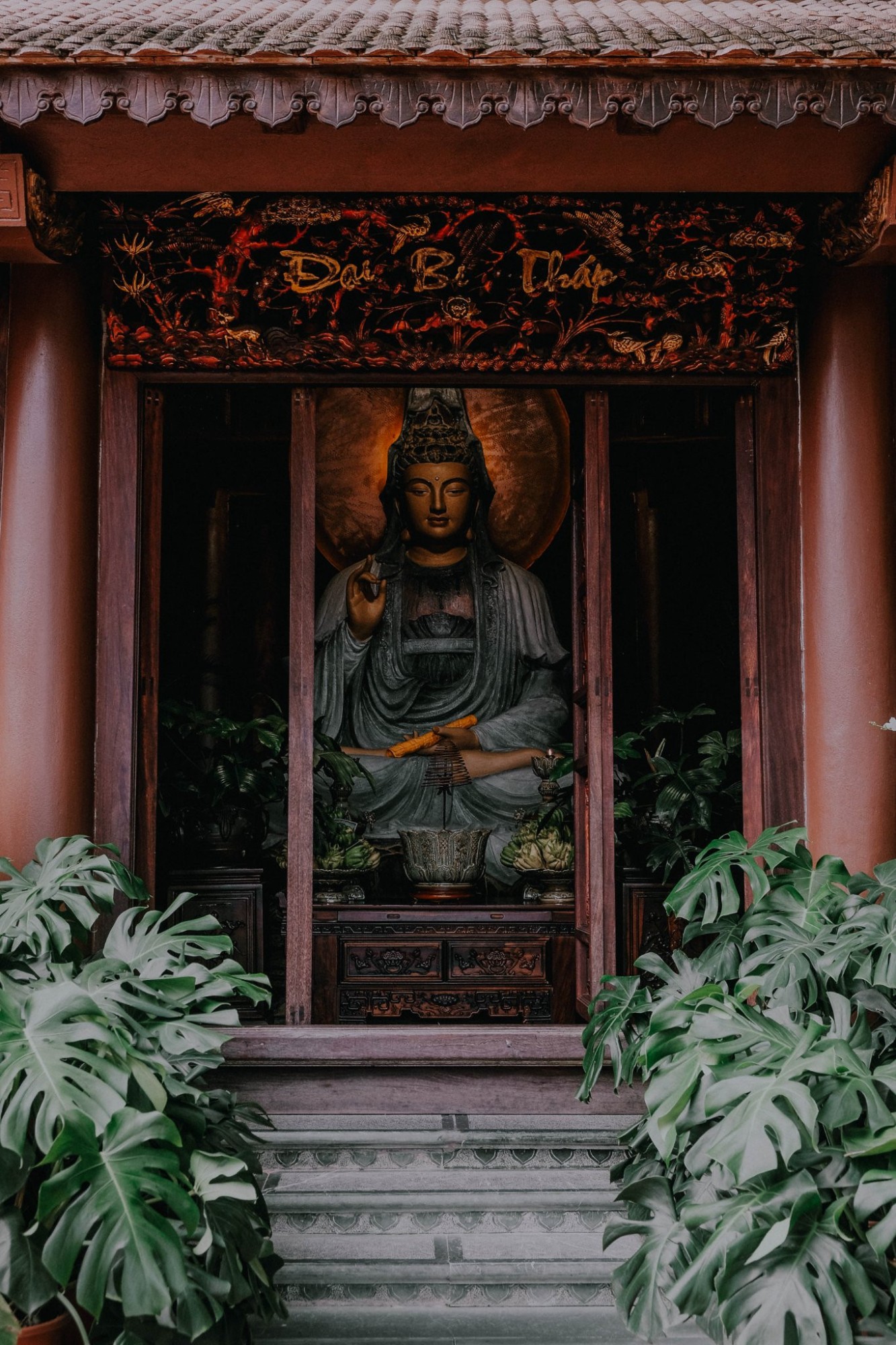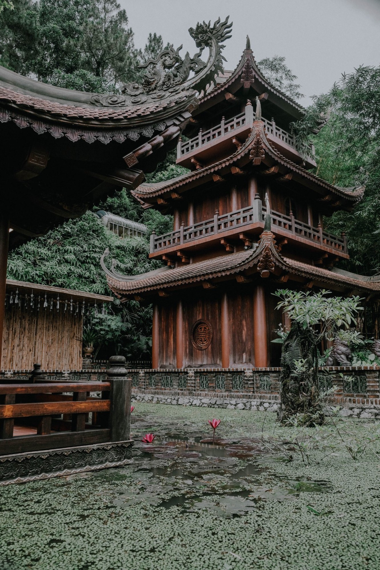Ảnh: July PhotographyChùa Địa Tạng Phi Lai nằm trên một ngọn đồi thấp với không gian rộng và bằng phẳng. Cả quần thể ngôi chùa nằm gọn giữa rừng thông, tạo nên bầu không khí lúc nào cũng mát lành, yên tĩnh. Địa Tạng Phi Lai Tự có thế tựa lưng vào núi với hai bên tả hữu thanh long - bạch hổ và lưu giữ nhiều cổ vật thiêng liêng mang tính lịch sử.