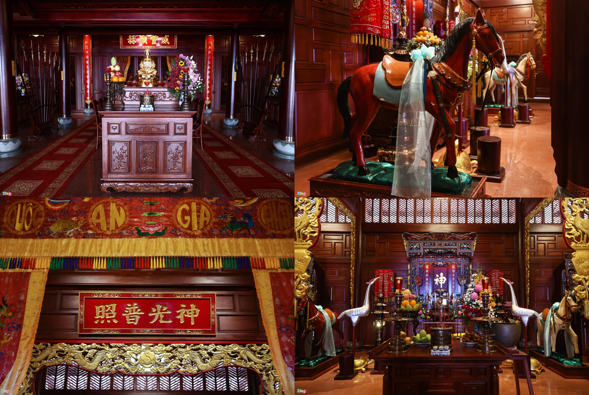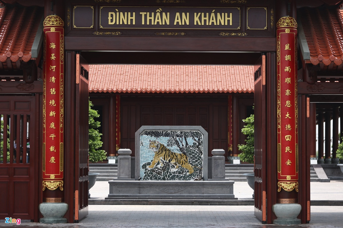 Tiến vào trong đền, bức bình phong thờ thần hổ được dựng trước chính điện. Từ đời xưa, hổ được xem là biểu tượng của sự uy linh, dũng mảnh, có khả năng trấn giữ cửa ải ngũ phương nên thường được có mặt các công trình kiến trúc cổ ở Việt Nam.