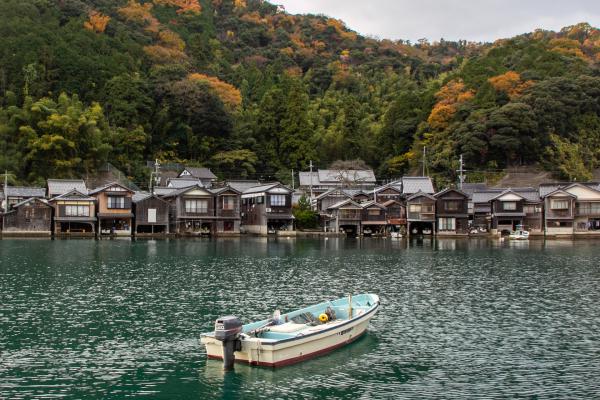 Làng chài nằm ở vịnh Ine (Kyoto) có hàng trăm nhà thuyền cổ kính sát mặt nước, mang vẻ đẹp nên thơ và yên bình.