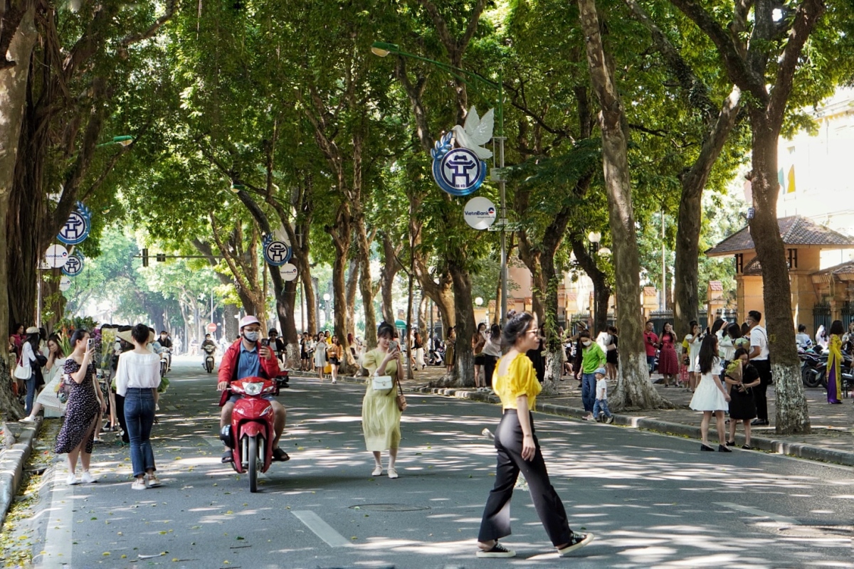 Đường Phan Đình Phùng, khu phố cổ... đông đúc cả ngày khi người Hà Nội đủ mọi lứa tuổi tụ tập ăn sáng, uống cà phê và chụp ảnh trong ngày thu đẹp trời.