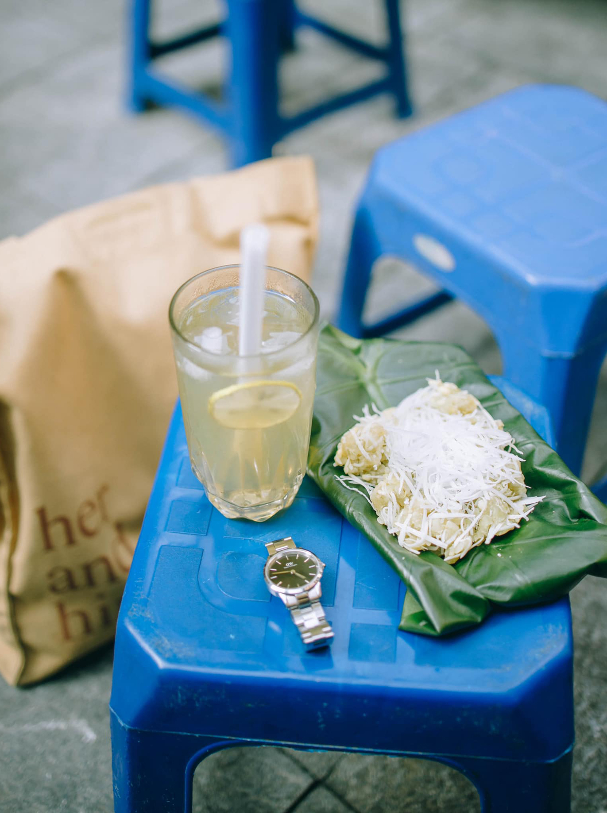 Xôi cốm, món ăn của mùa thu Hà Nội. Bạn có thể tìm mua xôi cốm ở những gánh hàng rong quanh phố cổ Hà Nội đoạn đầu đường Phan Đình Phùng, phố Lý Quốc Sư…