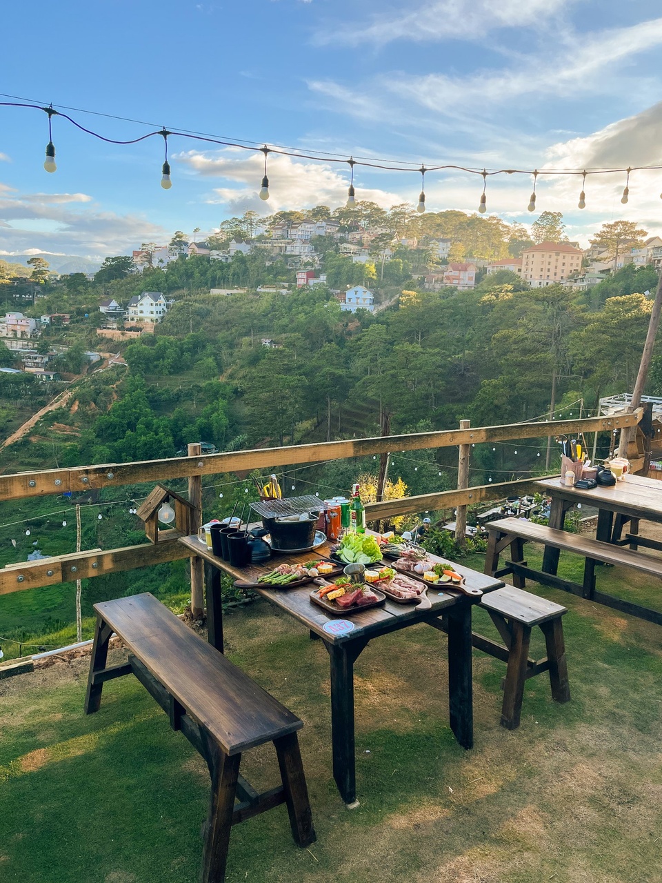 Đà Lạt đã đón nhiều bạn trẻ từ TP.HCM đến trốn nóng trong những ngày qua. Ảnh: Quán nướng Chill in Dalat. TP.HCM bước vào đợt nắng nóng kéo dài, nhiệt độ không dưới 30 độ C. Trong những ngày qua, đặc biệt là dịp cuối tuần, nhiều người trẻ TP.HCM đã đổ xô đến Đà Lạt để tránh nóng.