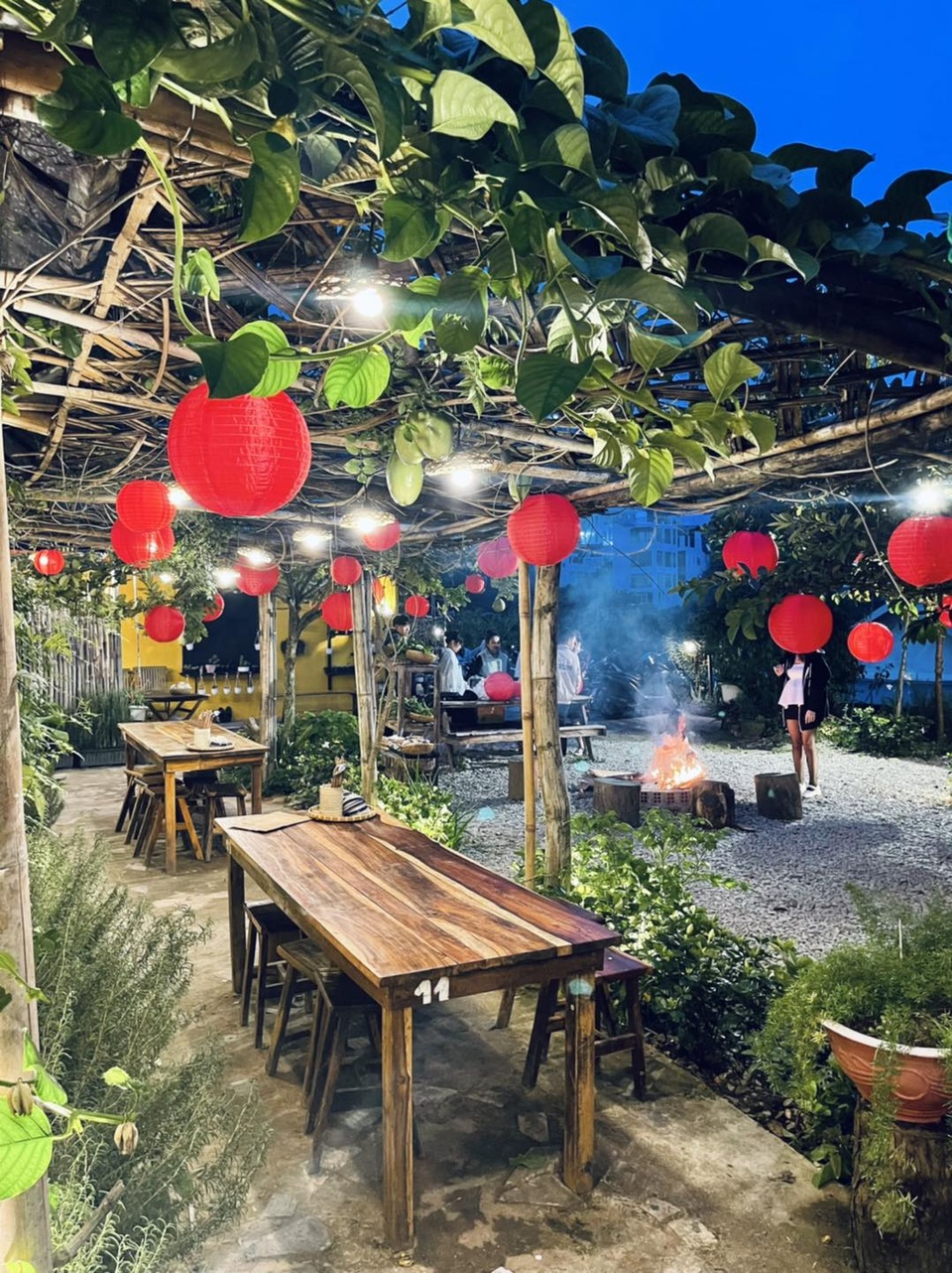 Một lựa chọn khác trên cùng con đường Đặng Thái Thân, được trang trí hoành tráng hơn là Chill in Dalat. Không gian quán thoáng rộng, khá ít bàn. Bù lại, vị trí bàn đặt cách xa nhau để tạo sự thoải mái, bàn bên cạnh cũng không bị ảnh hưởng khói nướng. Ánh đèn vàng ban đêm làm tăng phần lãng mạn.