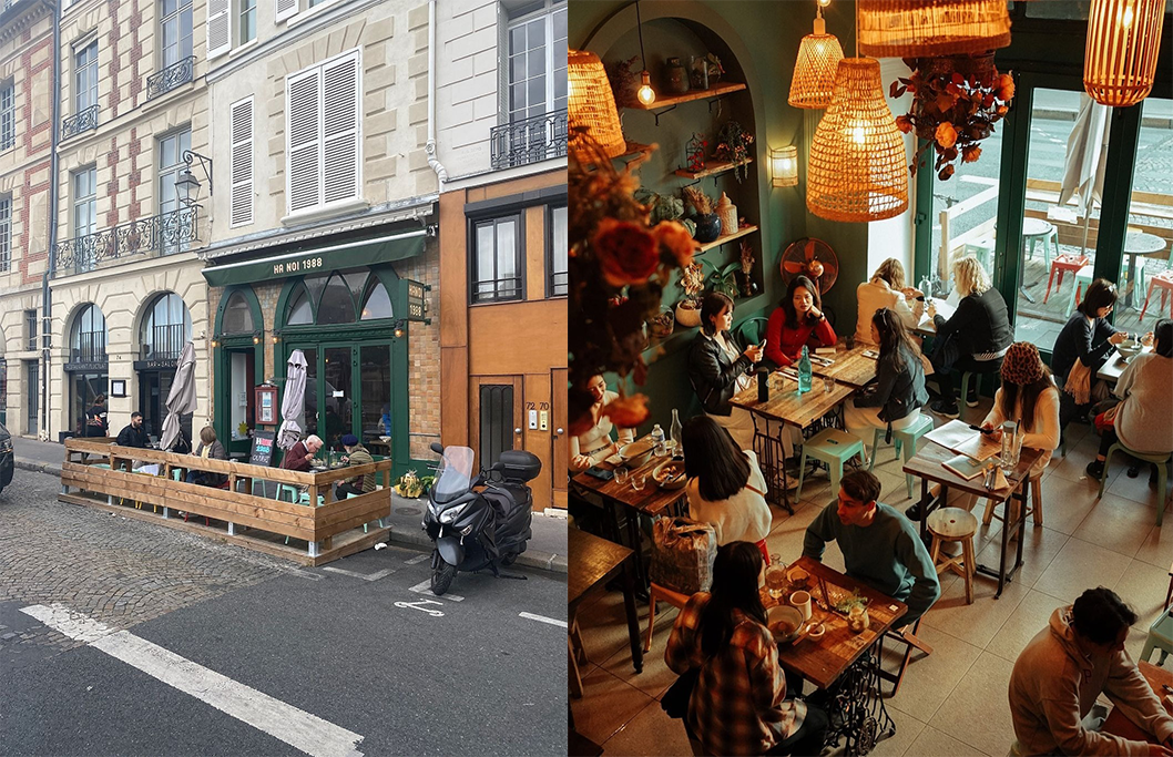 Ảnh: Hà Nội 1988. Trên Tripadvisor, nhà hàng này nhận được nhiều đánh giá tích cực từ du khách trên khắp thế giới. Với đồ ăn ngon, hợp khẩu vị, phục vụ tốt, mức giá chỉ 2-10 USD, nơi đây đã trở thành điểm đến yêu thích và quen thuộc của người dân Paris.