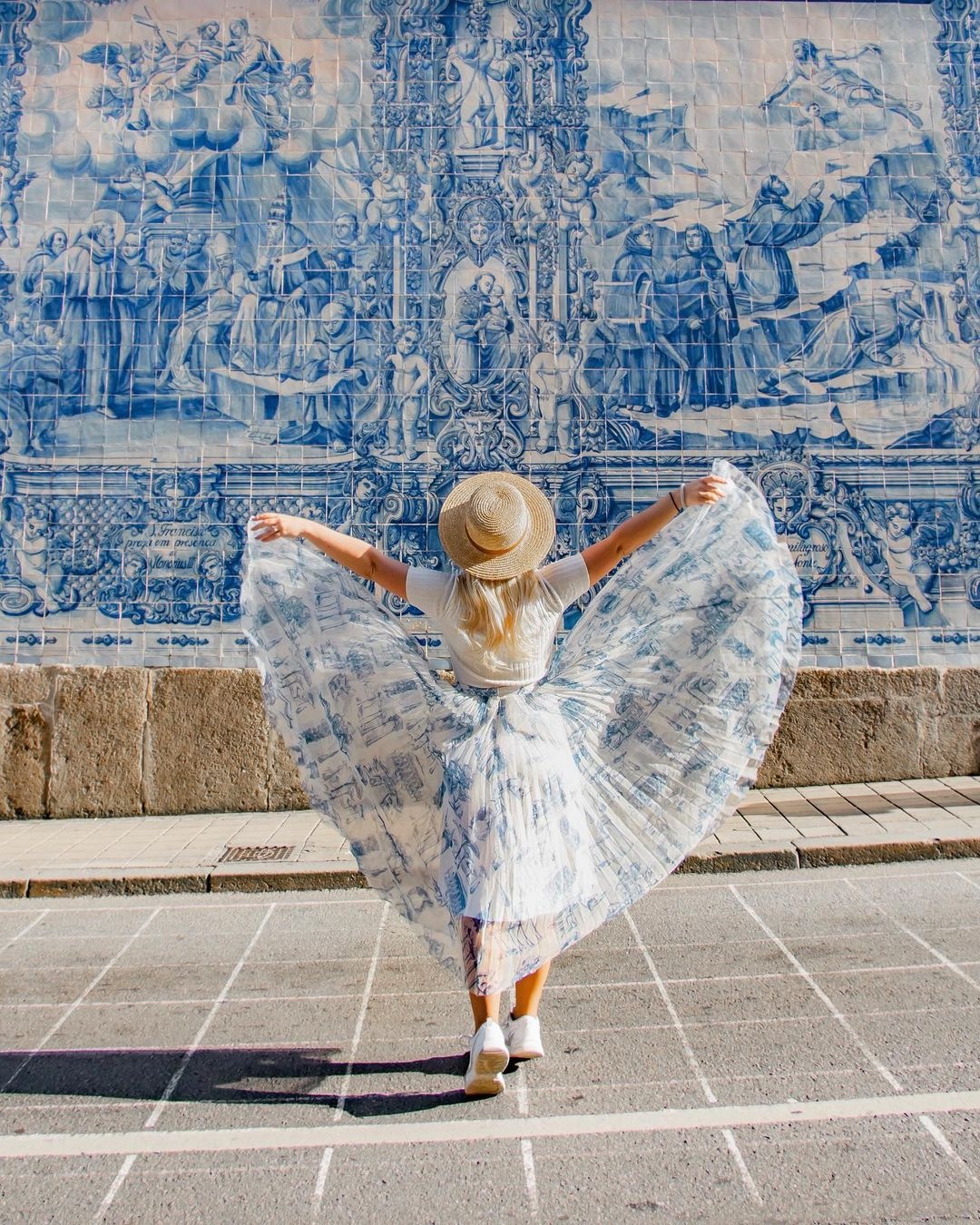 Điểm thu hút này được bao phủ bởi 15.947 viên gạch men màu xanh và trắng được lát bởi tác giả Eduardo Leite vào năm 1929. Những mảnh riêng lẻ này khi kết hợp sẽ tạo thành một bức tranh tuyệt đẹp đa sắc trên toàn bộ ngoại thất của nhà thờ. Ảnh: @norinaround.