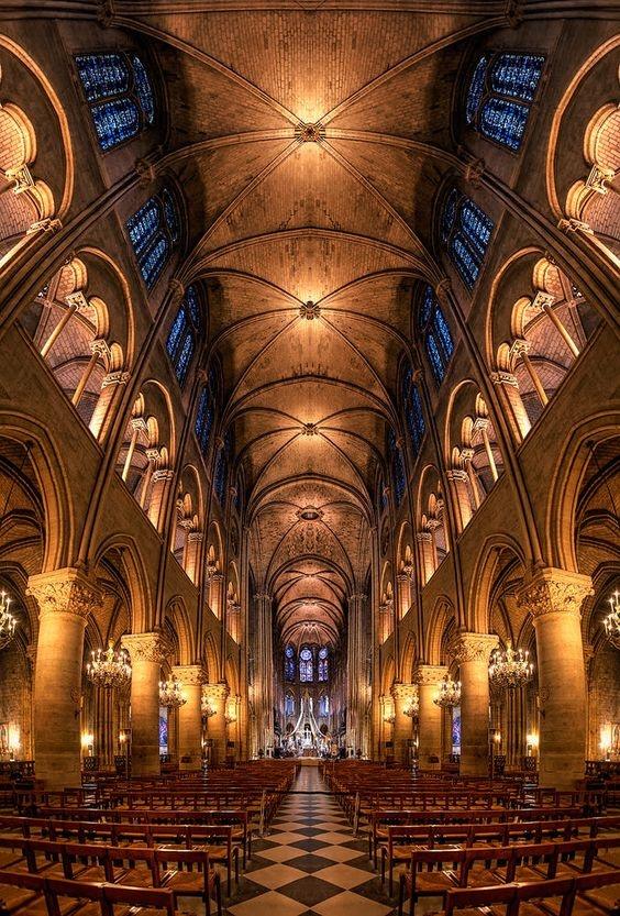 Bên trong nhà thờ Đức Bà Paris với mái vòm cao 43 m. Là nhà thờ của Tổng giáo phận Paris, Notre-Dame (tên tiếng Pháp của nhà thờ) là thánh đường của Tổng giám mục Paris. Theo thống kê, khoảng 13 triệu người đến tham quan nhà thờ Đức Bà hàng năm, đồng nghĩa với con số trung bình hơn 35.000 du khách mỗi ngày. Địa danh này đã trở thành nơi được viếng thăm nhiều nhất ở Paris. Ảnh: Sebastien Gaborit.