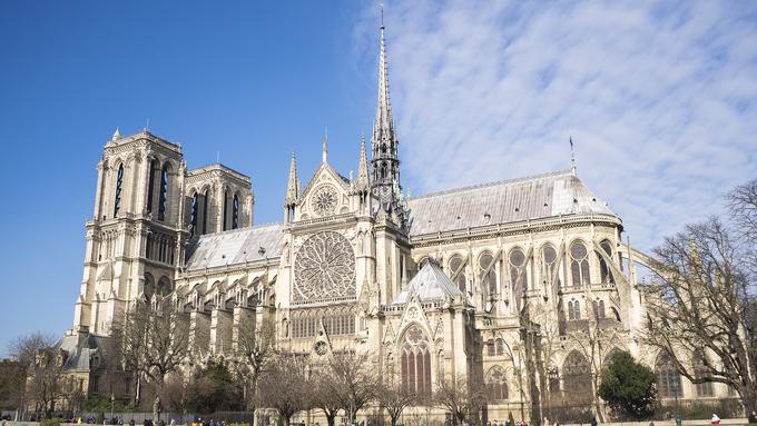 Bên hông Nhà thờ Đức Bà có ô cửa sổ lớn, đường kính lên tới 13 m có tác dụng lấy sáng cho không gian bên trong. Hai tòa tháp ở mặt tiền cao 69 m và là điểm cao nhất ở Paris cho đến khi tháp Eiffel hoàn thành vào năm 1889. Ảnh: Jimmy Palhano.
