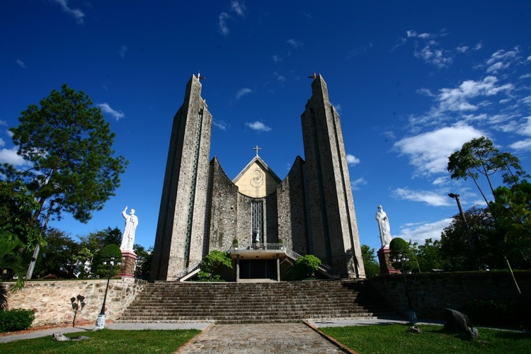 Trong phân đoạn Trịnh Công Sơn đi theo dấu chân Bích Diễm dưới mưa, khán giả có thể bất ngờ với hình ảnh một nhà thờ lạ lẫm. Thực tế, đây là hình ảnh cũ của nhà thờ Phủ Cam ở TP Huế. Hiện tại, nhà thờ đã được tu sửa và có hình dáng mới. Công trình có vị trí đẹp trên một ngọn đồi nhỏ có tên là Phước Quả ở bờ nam sông Hương. Đây là một trong những giáo đường lớn nhất, nổi tiếng nhất xứ Huế. Ảnh: Em và Trịnh, Hà Thành