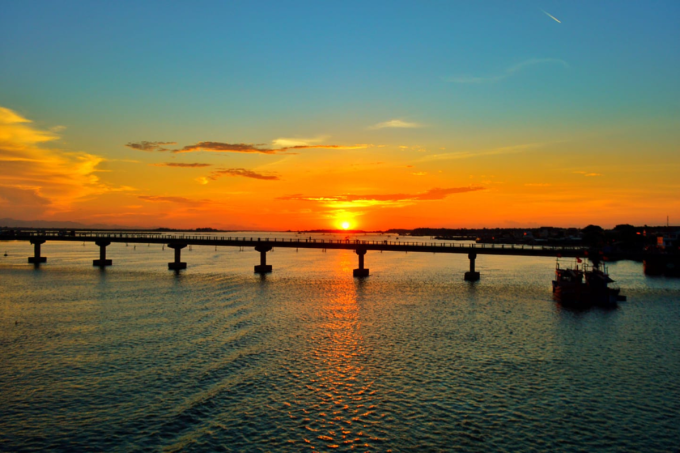 Cầu Thuận An. Cầu Thuận An là nơi giao nhau giữa cửa biển Thuận An và phá Tam Giang. Đứng ở trên cầu, bạn sẽ được ngắm hoàng hôn lặng trên Phá Tam Giang và một phần đổ bóng trên biển Thuận An. Từ cầu Thuận An, buổi sáng bạn có thể ngắm bình minh hướng biển bên phải và buổi chiều ngắm hoàng hôn hướng Phá Tam Giang về bên trái.