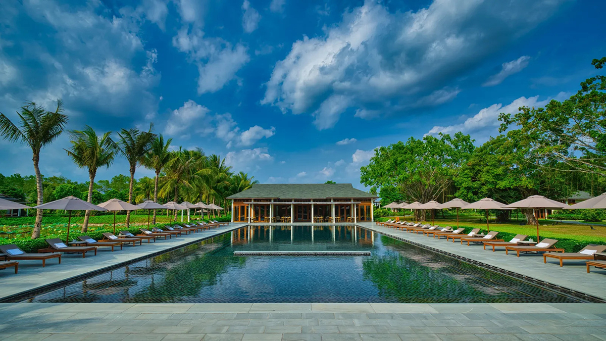 Azerai Cần Thơ nằm trên Cồn Ấu, một hòn đảo biệt lập trên sông Hậu tại đồng bằng sông Cửu Long. Cồn Ấu được xem là lá phổi xanh của Cần Thơ, giữ nguyên nhiều cây sim cả trăm năm tuổi. Khu nghỉ dưỡng xây theo phong cách tối giản, hài hòa với vẻ đẹp tự nhiên của cồn. Nơi đây cách TP HCM khoảng 3 tiếng đi bằng ôtô. Ảnh: Khu nghỉ dưỡng