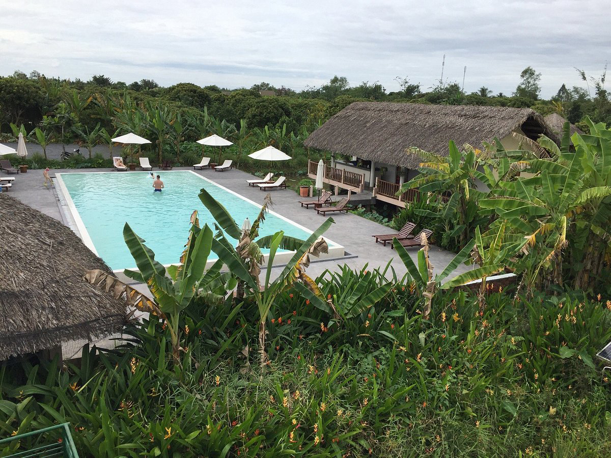 Bên trong khu nghỉ dưỡng là một bể bơi lớn, một spa chăm sóc theo các liệu trình đậm tính địa phương. Ngoài ra, khu nghỉ dưỡng có một nhà hàng phục vụ cả đồ ăn của đồng bằng sông Cửu Long lẫn đồ Tây. Một đêm nghỉ tại đây có giá từ 1,8 triệu đồng. Ảnh: Tripadvisor