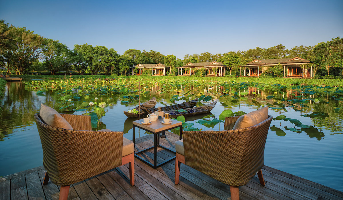 Khu nghỉ có 60 phòng và 5 villa có bể bơi riêng, chỉ có thể tiếp cận bằng thuyền. Những đặc trưng của miền Tây sông nước được thể hiện ở khu nghỉ qua những bàn ăn đặt cạnh đầm sen, hay spa nằm ẩn mình dưới tán đa cổ kính.
