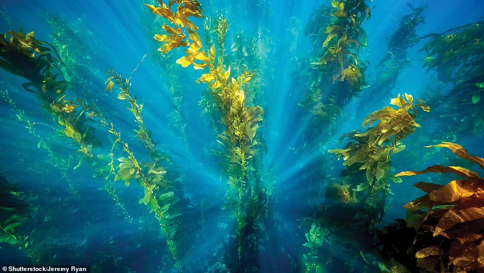 Không chỉ những khu rừng trên cạn, cuốn sách cũng mở ra thế giới của những khu rừng dưới nước trước mắt độc giả. Trong ảnh, khu rừng tảo bẹ ở California (Mỹ). Tác giả cuốn sách nói thêm: "Khu rừng như một vòng tuần hoàn của biển. Tảo bẹ hấp thụ carbon dioxide, làm giảm sự axit hóa đại dương. Nó cũng giải phóng oxy vào nước".