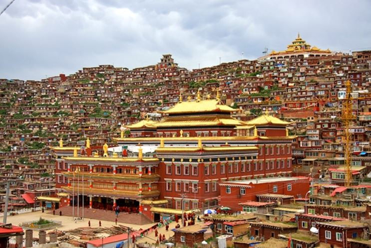 Cao nguyên có phong cảnh tuyệt đẹp. Các ngôi chùa Phật giáo Tây Tạng tập trung tương đối nhiều và đều là những ngôi chùa thuộc phái Hồng môn. Đứng ở trên cao, bạn có thể chiêm ngưỡng những ngôi nhà màu đỏ bất tận, như thể bước vào thế giới màu đỏ ảo mộng.