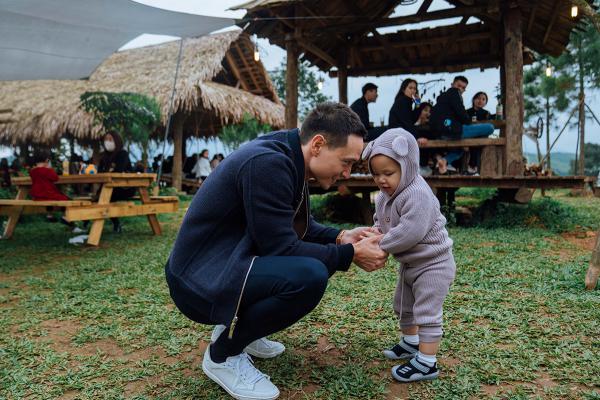 Kim Lý chơi với con mình trong khuôn viên quán ăn. Ảnh: Thoại Hoàng (Nguồn: Trung Nghĩa, VnExpress, Thứ ba, 8/2/2022, 16:51 (GMT+7))