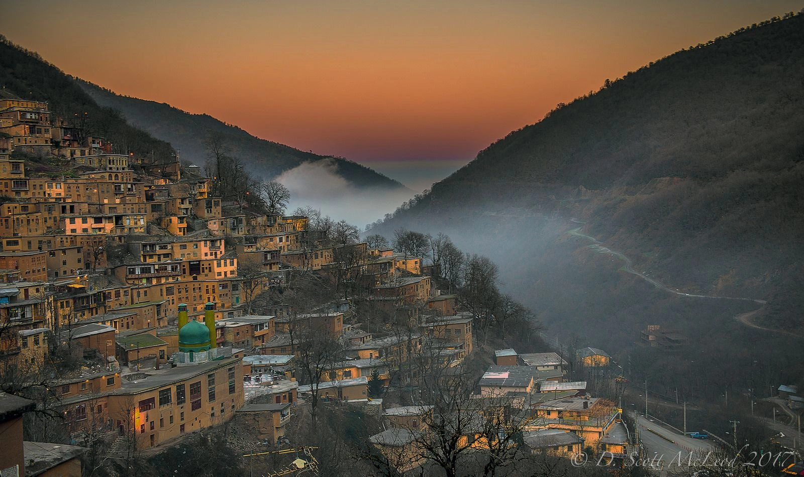 Do vị trí địa lý, khí hậu của làng Masouleh khác với phần lớn các vùng dân cư ở Iran. Không khí ấm áp, ẩm ướt từ Caspian thổi về bị dãy núi Alborz chặn lại, tạo mưa và sương mù dày. Sương mù cũng được xem là một trong những "đặc sản" của ngôi làng. Ảnh: WelcometoIran.