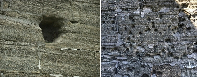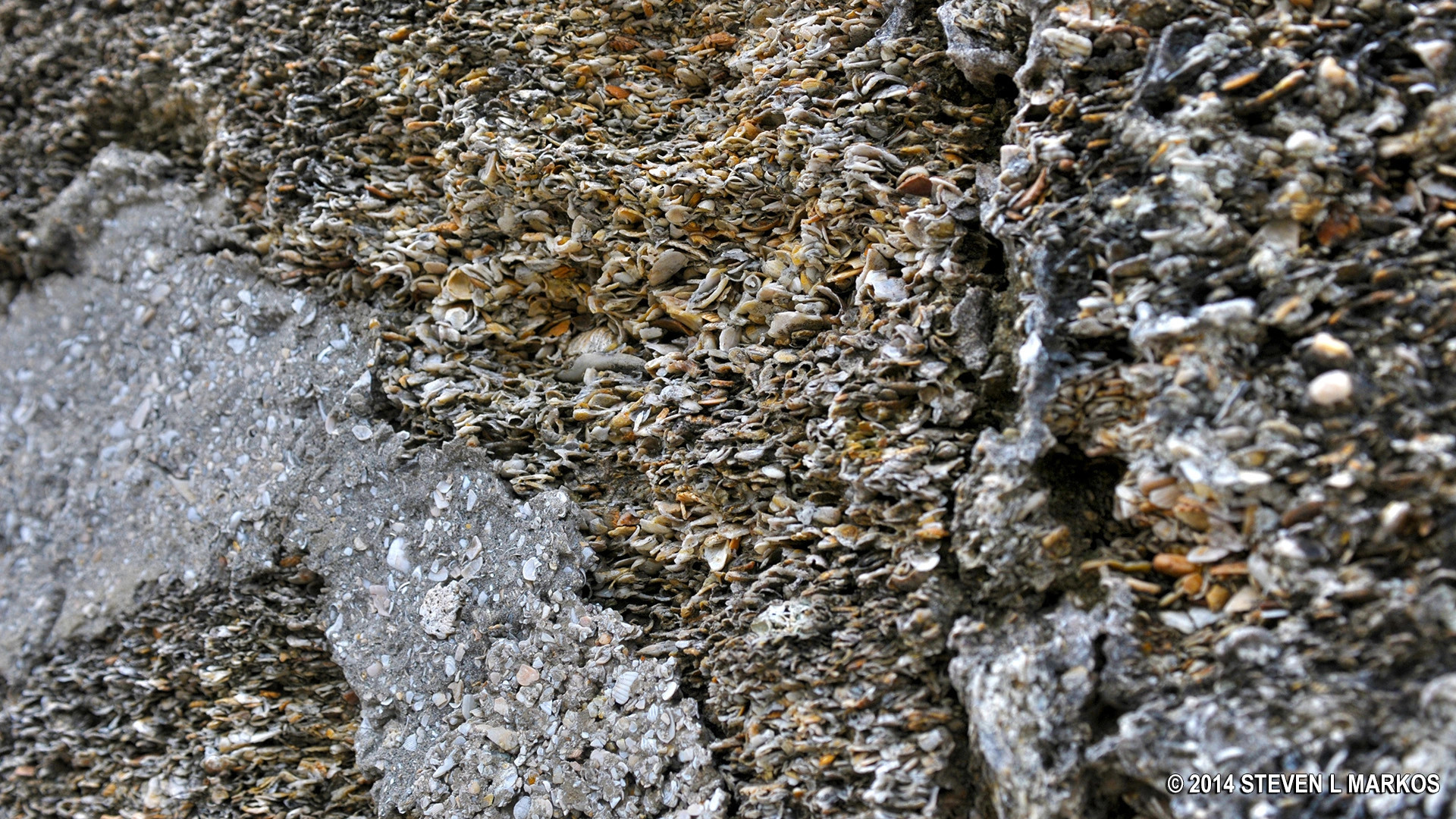 Ảnh: ParkrangejohnDù vỏ động vật tạo thành coquina bị chồng và ép suốt hàng nghìn năm, chúng không thành khối như bê tông mà có thể dịch chuyển đôi chút. Do đó, khi đạn đại bác trúng vào tường coquina ở Castillo de San Marcos, nó làm vỡ những phần vỏ va chạm trực tiếp, nhưng các phần xung quanh sẽ tự tạo chỗ cho đạn.