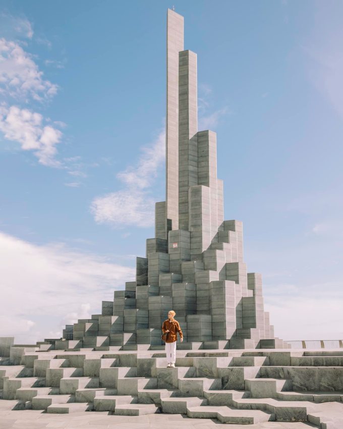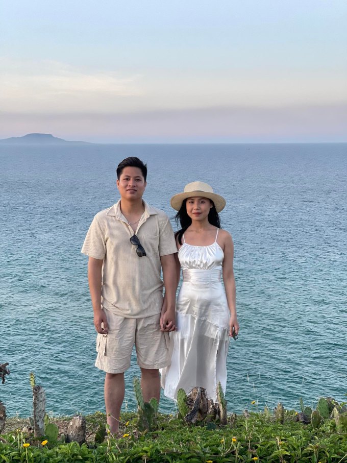 Bùi Quang Thụy check-in với tháp Nghinh Phong, một trong những điểm đến mới của Phú Yên. Ảnh: NVCC Ông Cao Hồng Nguyên, trưởng phòng Quản lý Du lịch tỉnh Phú Yên, nhận định: "Phú Yên mới nổi trên bản đồ du lịch Việt Nam. Mùa hè cuối tháng 5 đến tháng 8 là cao điểm du lịch Phú Yên do nhiều bạn trẻ được nghỉ hè. Các điểm như tháp Nghinh Phong, cao nguyên Vân Hoà là sản phẩm trải nghiệm mới. Ngoài ra, ẩm thực địa phương hấp dẫn, giá rẻ".
