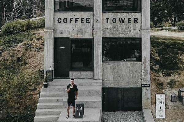 Quán cà phê The Rectangle Coffee x Tower tại Chiang Mai nhìn như một dự án xây dựng đang bỏ dở.