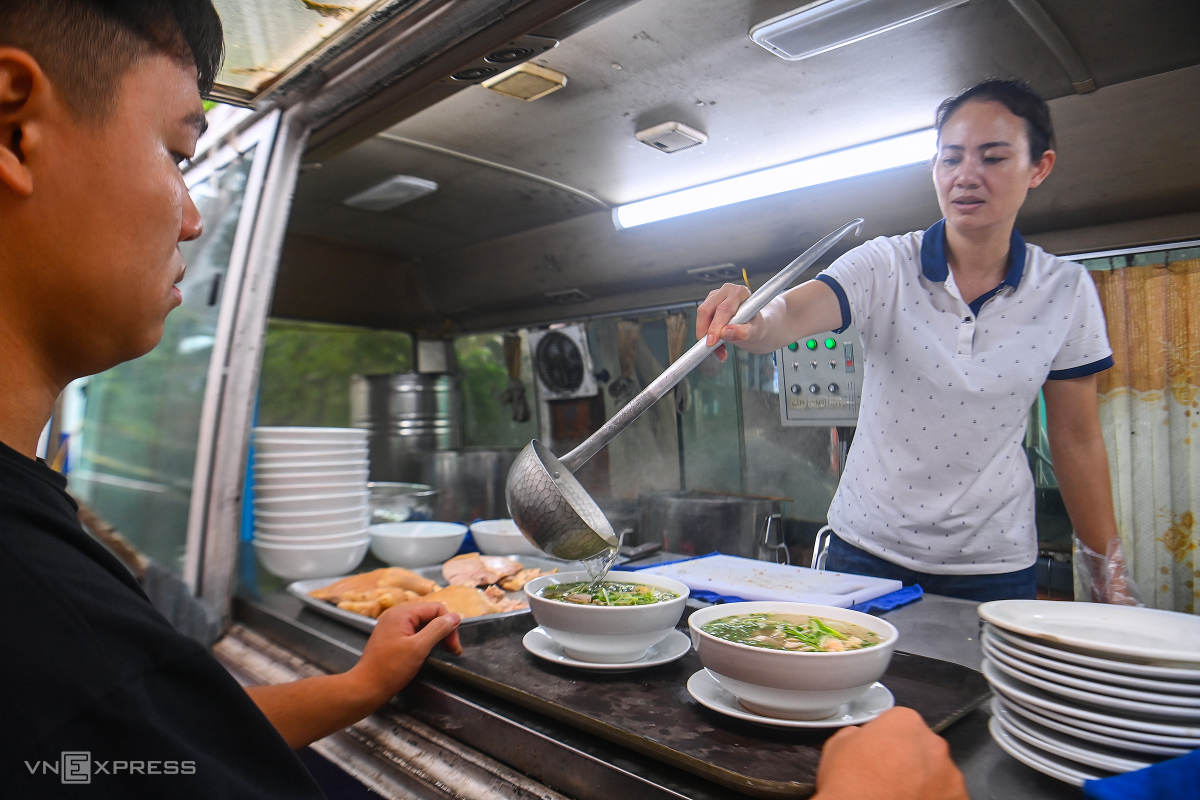 Nhờ có ý tưởng sử dụng xe khách cũ, cải tạo thành nơi bán phở mà quán của chị Thu Hiền được nhiều người tìm đến.