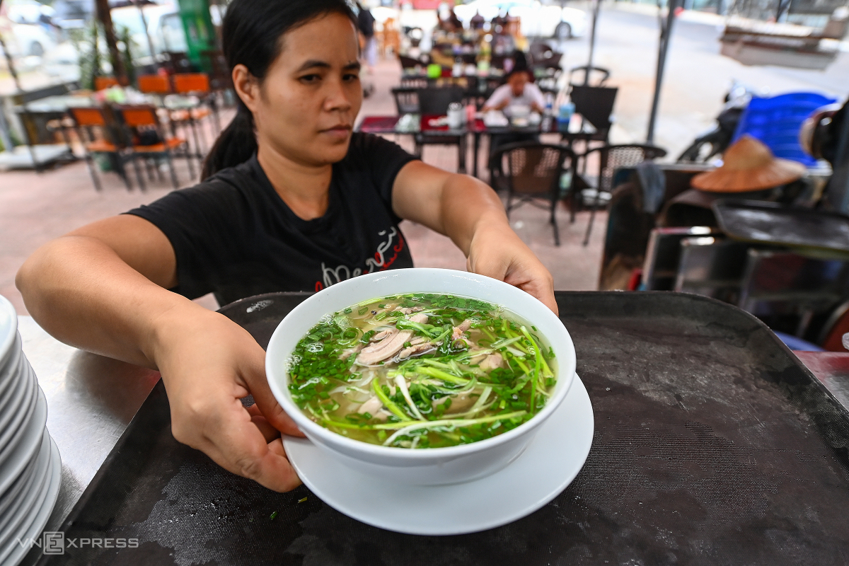Quán có 4 người phục vụ, mỗi người đảm nhận một phần việc khác nhau. Mỗi ngày quán tiêu thụ hơn 30 kg bánh và bán hơn 150 bát phở trong vòng 2-3 tiếng.
