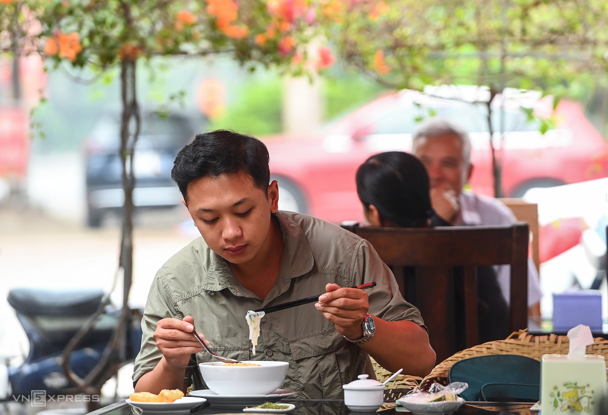 "Thấy phong cách quán phở lạ nên tôi đã quyết định vào ăn thử, phở khá ngon, rất đáng để tôi quay lại nhiều lần nữa", anh Kim Sơn Tùng, nhà ở phố Lạc Long Quân gần đó, cho biết.