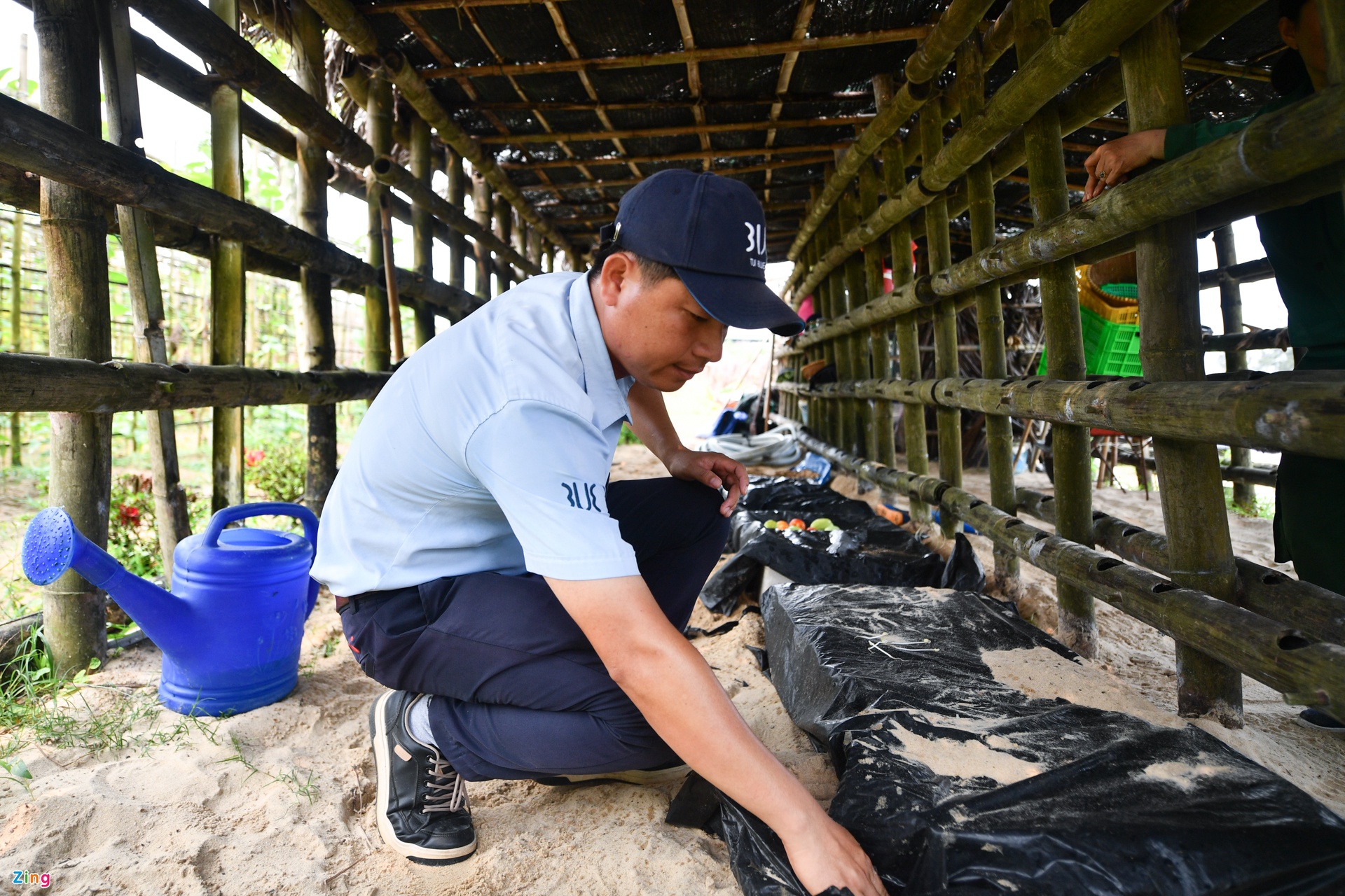 Anh Trần Văn Thời, trưởng vườn rau, cho biết định hướng của resort là phát triển bền vững nên canh tác vườn rau hoàn toàn theo phương pháp hữu cơ. "Rau củ được trồng hữu cơ cũng sẽ có vị rất khác so với trồng thông thường", anh Thời nói.