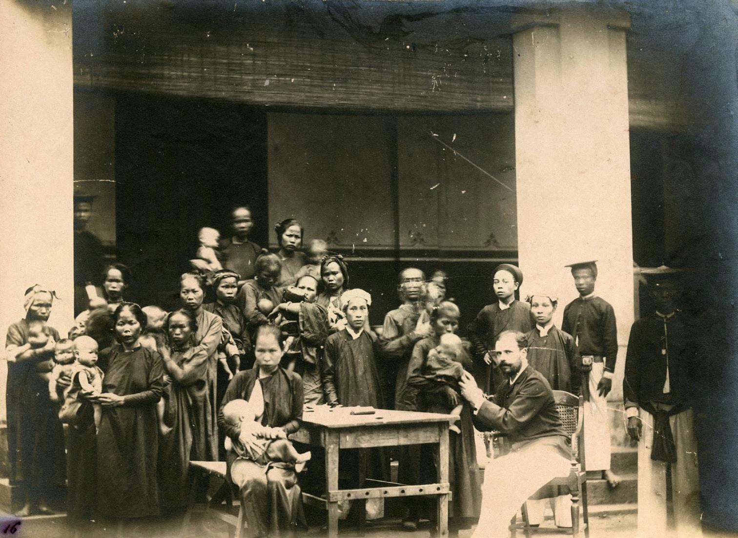 Ảnh: Bộ sưu tập của Terry BennettTiêm chủng là một phần việc của Baurac ở miền Nam Việt Nam. Trong ảnh là cảnh tiêm phòng ở Chợ Lớn, thập niên 1890.