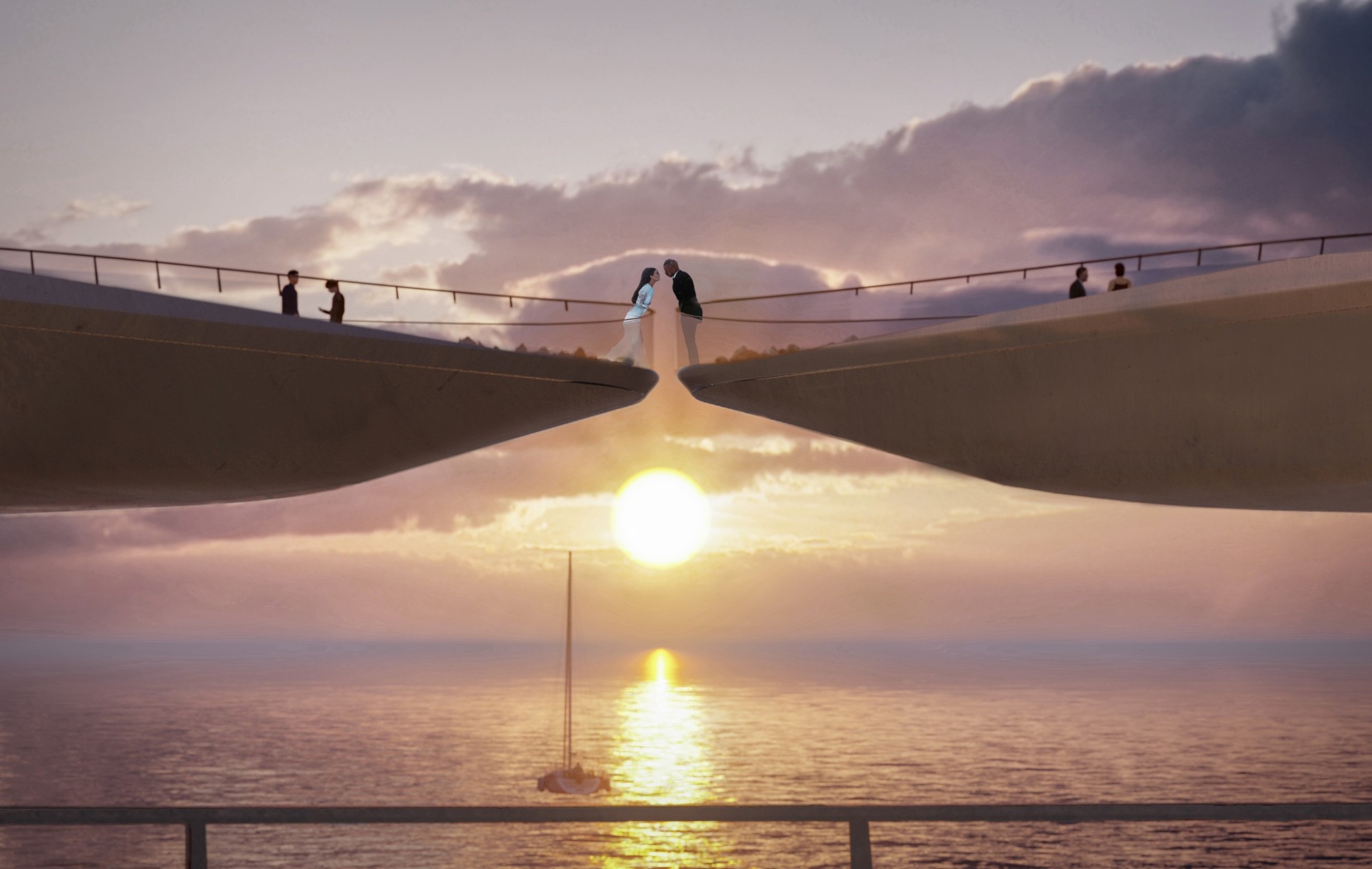Nổi bật trên mặt biển xanh ngọc ngà của Đảo Ngọc, Cầu Hôn tạc vào không gian một chỉ dấu vĩnh hằng dẫn lối cho những người yêu thương gặp gỡ nhau trong nỗi nhớ khôn nguôi Dù ra đời sau nhưng Cầu Hôn lại được coi như con cưng của Marco Casamonti khi ông đã phải mất tới 2 năm để thai nghén ý tưởng và lên thiết kế.