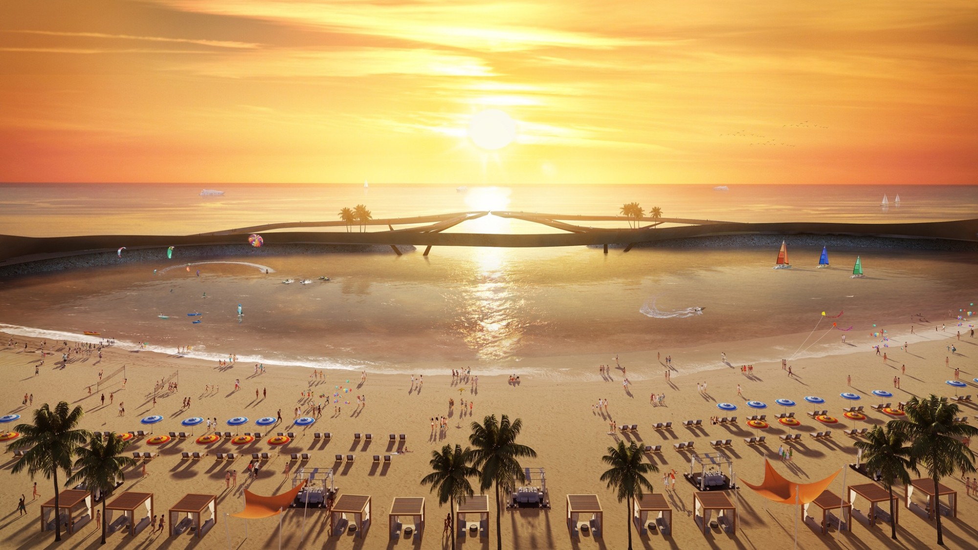 Một trong những điểm đặc biệt nhất của công trình là các kỹ sư, kiến trúc sư đã khéo léo tính toán để "nút chạm" của cây cầu cũng chính là điểm đón hoàng hôn trên đại dương. Lúc này, mặt trời sẽ từ từ hạ xuống, hiện hữu chính giữa cầu, "rơi" đúng qua khoảng trống 50 cm của hai cánh cung lớn trước khi chìm xuống đáy biển.