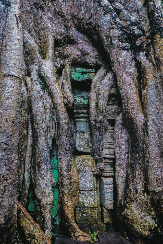 Những rễ cây mọc tràn lên đỉnh của ngôi đền, nhưng điều đặc biệt là chúng luôn mọc tránh khuôn mặt của những bức phù điêu