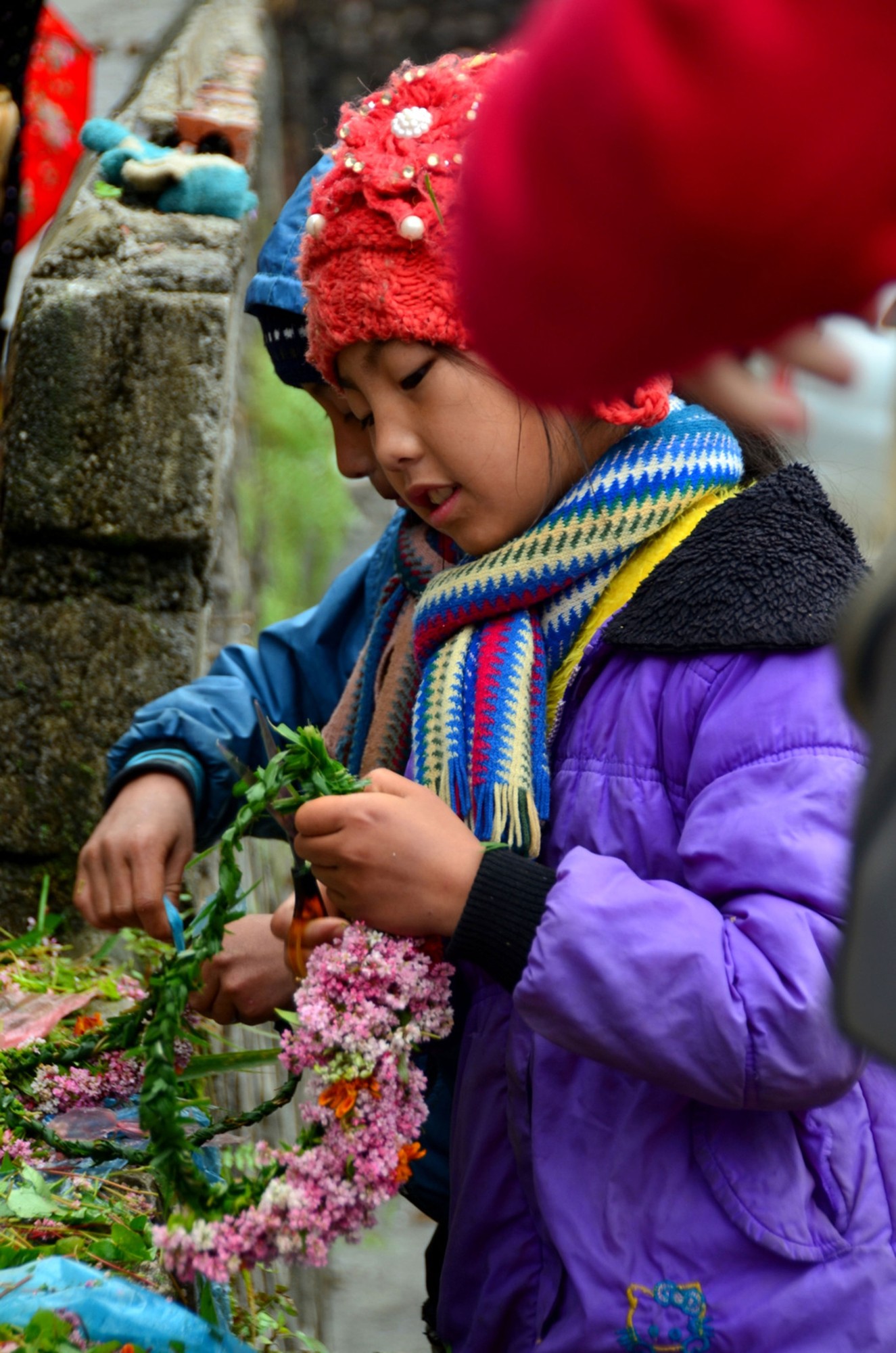 Vẻ đẹp hoa tam giác mạch được trẻ em H’mông bản địa tận dụng, tự tạo nên các vòng hoa bán cho du khách