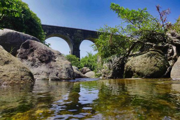 Cầu Đồn Cả kiểu vòm cuốn, xây bằng đá. Ảnh: Ngô Hòa NamXe máy phải để lại ở đây (có thể khóa xe để ở đây hoặc chạy thêm một đoạn ngắn gửi ở ga Hải Vân Bắc ngay cạnh đó). Từ đó đi bộ dọc theo đường tàu ngược về phía Đà Nẵng khoảng gần 1km nữa thì đến cầu vòm Đồn Cả.