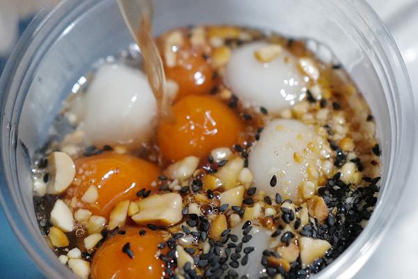Công đoạn tiếp theo là luộc chín bánh. Các viên bột được thả vào nước sôi, khi nổi lên thì vớt ra xếp vào bát, rồi chan nước đường xâm xấp. Một bát thắng dền ngon hay không phần lớn được quyết định bởi nước đường. Mỗi người có một công thức riêng, song nguyên liệu chung thường gồm đường, nước cốt dừa, nước gừng đun nóng và rắc thêm vừng, lạc.