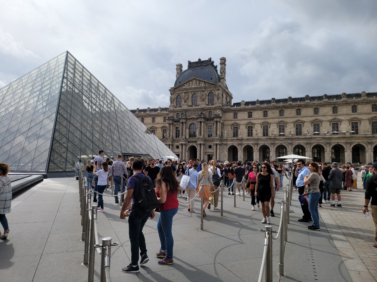 Du khách xếp hàng dài để vào ngắm bức tranh Mona Lisa ở bảo tàng Lourve. Paris đã đón 9,9 triệu du khách đến thăm vào mùa hè này - chỉ giảm 3,5% so với con số của năm 2019, dù hè Pháp nắng nóng kỷ lục và nhiều khó khăn liên quan đến lạm phát trong khu vực (ảnh: VI NGUYỄN)