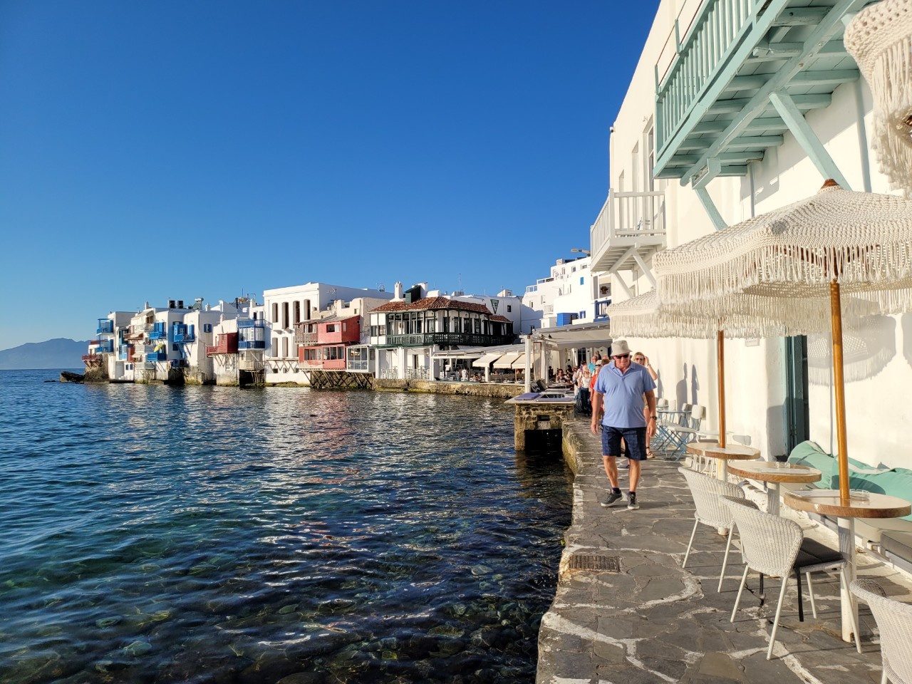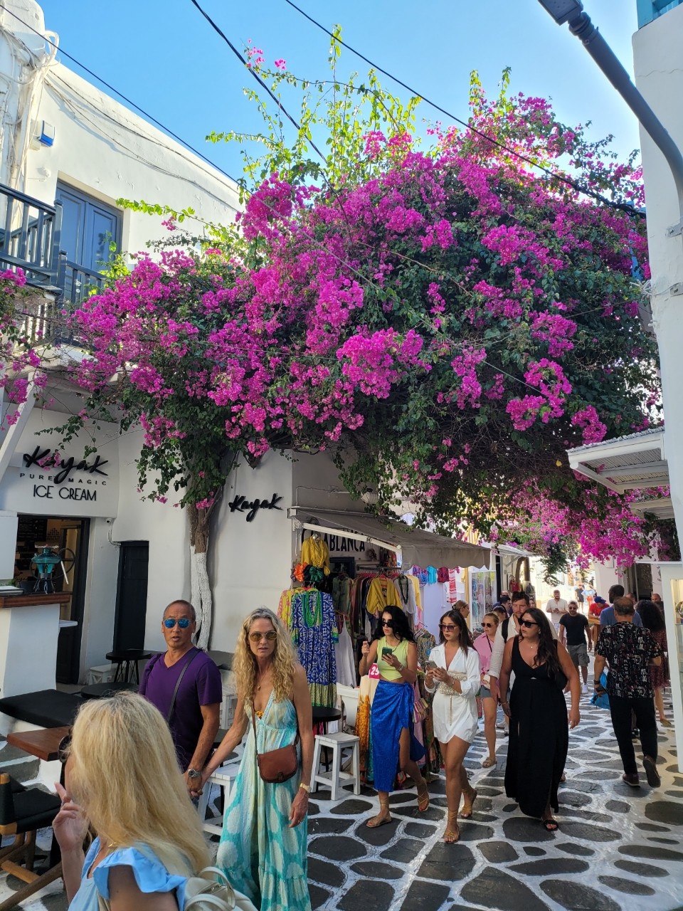 Mykonos, hòn đảo của Hy Lạp nằm ngoài khơi Địa Trung Hải và cách Santorini 3 giờ đi phà trên biển, tràn ngập khách châu Âu. Du khách đến đây tắm biển, mua sắm (ảnh: VI NGUYỄN)