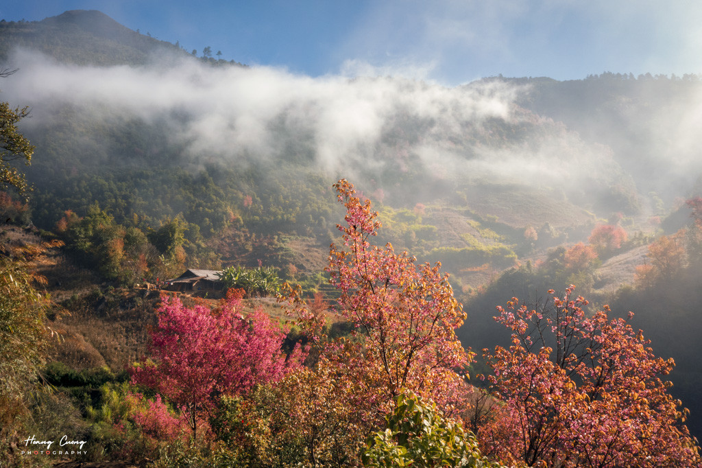 Những ngày cuối năm, núi rừng Tây Bắc ở các tỉnh như Yên Bái, Lào Cai bắt đầu “đón tết sớm” bằng sắc hồng rực rỡ của hoa Tớ dày.