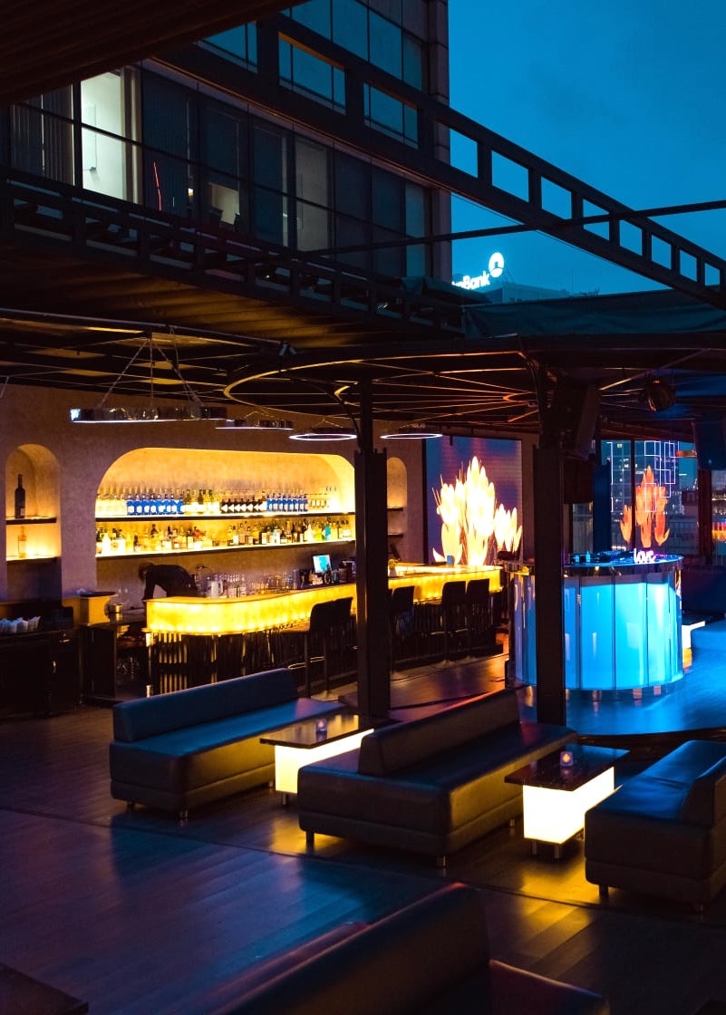 Khoảng trời lộng gió, view ngắm cảnh thành phố về đêm cùng đồ uống hấp dẫn giúp bạn tận hưởng những giây phút say mê, thú vị.