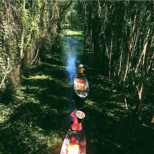 Ngồi trên những chiếc xuồng ba lá, len lỏi trong kênh rạch chằng chịt của rừng chàm. Bạn sẽ có cơ hội thả mình trong bốn bề xanh ngắt với những hàng cây tràm thẳng tít hai bên, dưới nước là lớp bèo trôi, không gian yên tĩnh, thỉnh thoảng văng vẳng tiếng chim hót dịu dàng biết bao. Nếu may mắn, bạn còn có thể bắt gặp những chú chim chẳng-sợ-ai mà đậu ngay thân cây hay khóm hoa bên bờ, khá hay ho đấy.