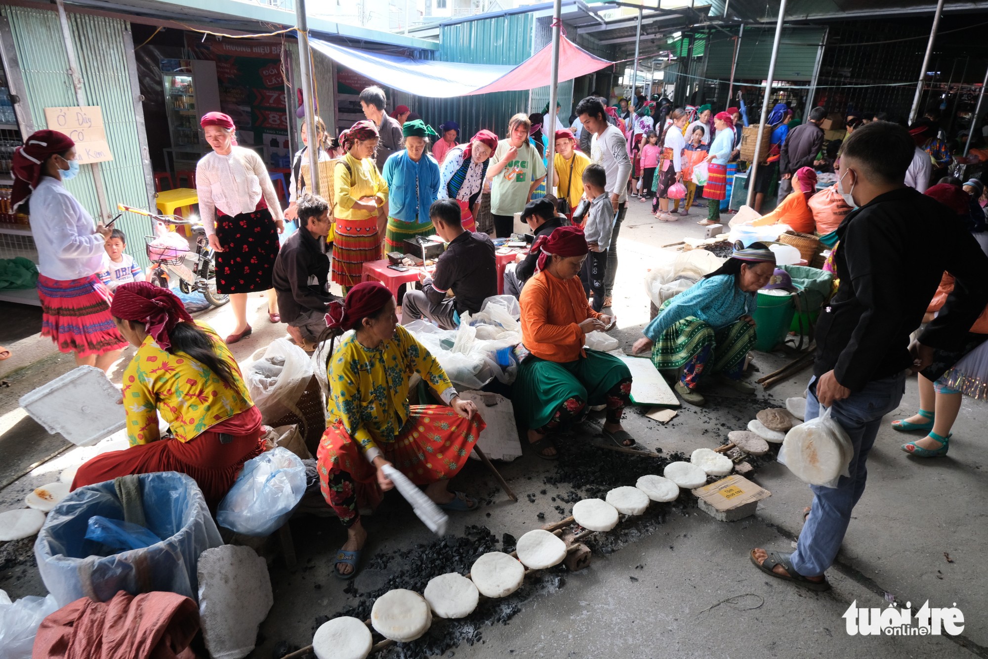 Chị Vàng Thị Mỉ (35 tuổi, dân tộc Mông), bán bánh ngô ở phiên chợ, cho biết đã gắn bó ở phiên chợ này suốt chục năm qua. Được mẹ chỉ dạy, chị đã học cách làm bánh ngô, nhờ đó cuộc sống đỡ vất vả hơn, "có tiền mua thức ăn, quần áo cho con".