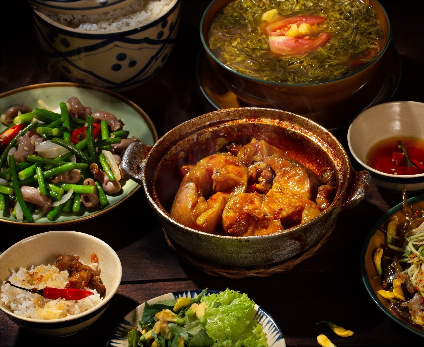 Bữa ăn gợi nhắc hương vị gia đình. Ảnh: Nhahangtre.vietcuisine. Tại đây, thực khách còn có cơ hội nhâm nhi bữa sáng với các món sợi ấm nóng đặc trưng ẩm thực Hà Nội, trong đó phở hay bún riêu thố đá là gợi ý không thể bỏ qua. Các món xôi Bắc như xôi cá rô, xôi xéo, xôi bắp, xôi thịt kho cũng chinh phục những ai đang tìm kiếm hương vị ẩm thực miền Bắc. Với các món ăn nhẹ, gỏi cuốn, bì cuốn, chả ram là điểm nhấn trong thực đơn.