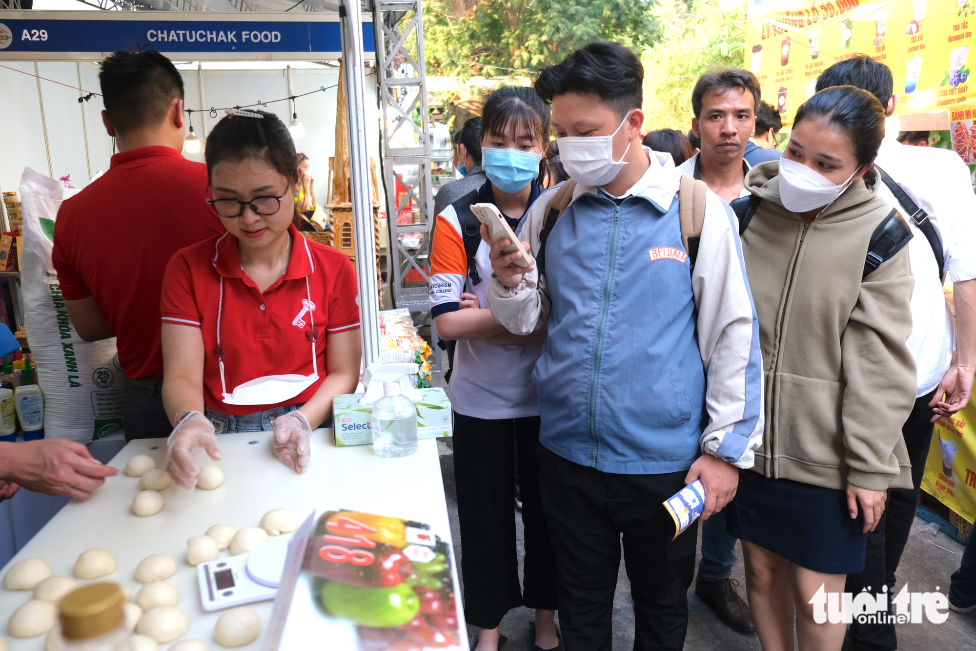 Bạn Đinh Thị Thảo (quận Tân Phú, TP.HCM) chia sẻ: "Tôi vốn là dân đạo bánh mì vì đây là món dễ ăn, hợp túi tiền. Nay ghé qua có rất nhiều gian hàng bày bán đa dạng các món. Riêng về bánh mì thì tôi thấy có bánh mì thịt chả truyền thống, bánh mì nướng, bánh mì chấm cà ri… bắt mắt và thơm ngon".