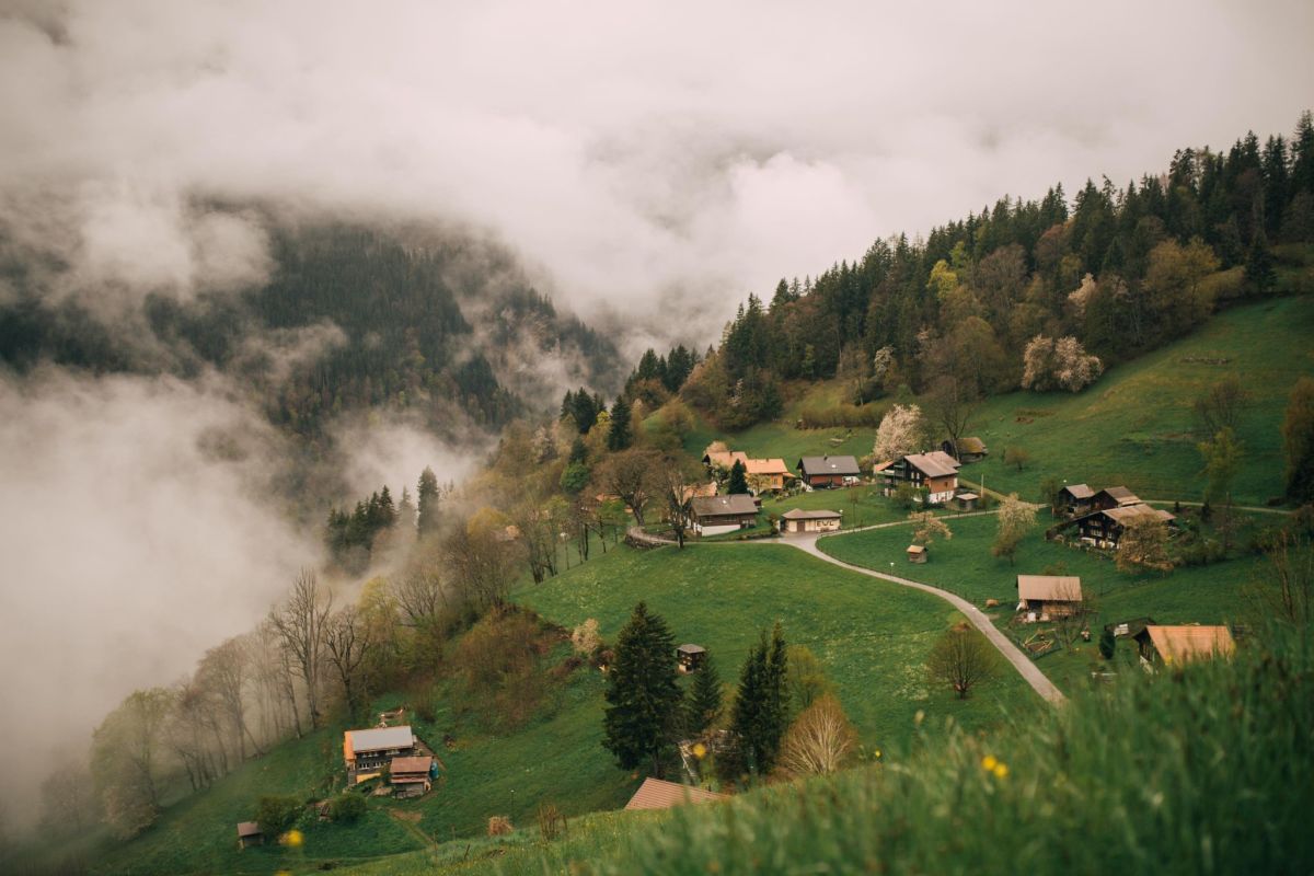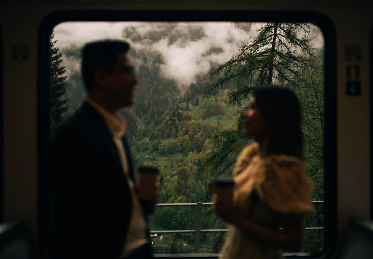 Wegen, một ngôi làng trên cao nguyên của dãy núi Jungfrau. Tháng 5 thời tiết thất thường, khi mưa, khi nắng. Cặp đôi được thấy khung cảnh yên bình khi sương giăng trên những tán cây rừng, nếp nhà yên bình.